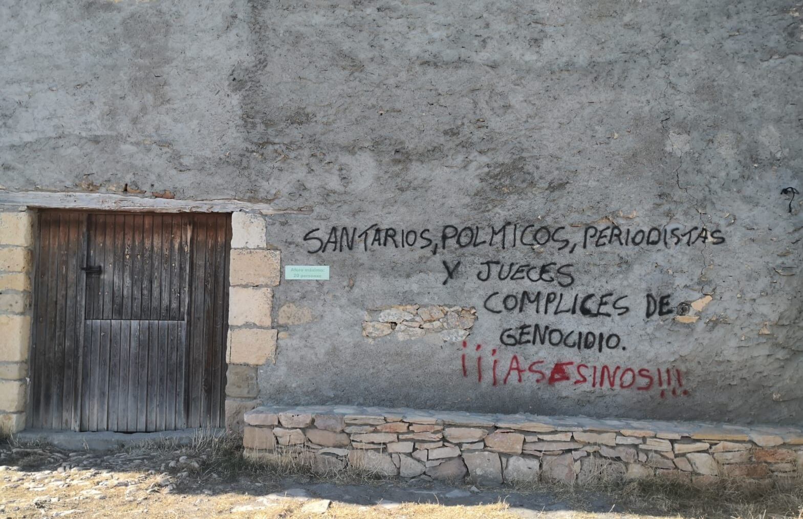 Los vecinos de Adahuesca y Alquézar están indignados por las pintadas que han aparecido en dos monumentos emblemáticos como son el Mesón de Sevil de Adahuesca y la Fuente de San Pelegrín de Alquézar, pertenecientes a la Comarca de Somontano.