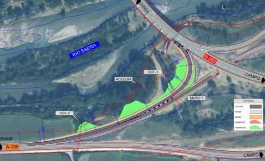 El proyecto contempla la mejora del ramal tanto en planta como en alzado y la ejecución del carril de cambio de velocidad al ramal Campo-Graus del mismo enlace, suprimiendo así el STOP existente. La pendiente máxima del nuevo ramal se reduce del 13% actual al 6,90%.