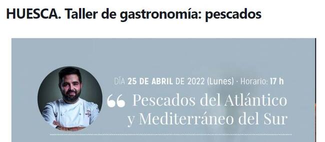 Este lunes, 25 de abril, a las 17 horas, tendrá lugar la primera de las actividades de una nueva edición de los talleres "Huesca La Magia de la Gastronomía". El protagonista será Juanlu Fernández de 'Lú Cocina y Alma' y en el taller se centrará en los pescados del sur y cómo llevar pescados humildes a la alta cocina.