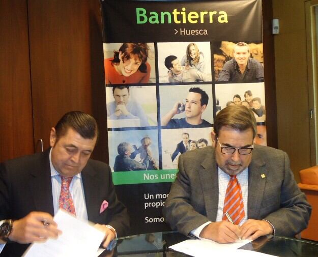 El presidente de la Federación de Empresarios del Metal de Huesca (FEMHU), Fernando Palacin Lafuente, y el Director de Zona para Huesca de la Caja Rural de Aragón (Bantierra), Juan Antonio Castanera, han suscrito este jueves un convenio de colaboración entre ambas entidades, cuya finalidad esencial es proveer, de determinadas ventajas y herramientas financieras la actividad de los profesionales de las asociaciones que componen la Federación