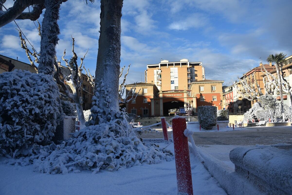 La Plaza Aragón de Barbastro, desde la mañana de este sábado, muestra un paisaje invernal nevado, como si sobre ella hubiera descargado una tormenta de nieve creando un efecto navideño que se mantendrá durante estas fechas navideñas y que desde hoy recibe a los vecinos y todas aquellas personas que durante estos días visiten nuestra ciudad.