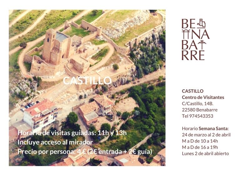 La imagen ya se puede ver en la oferta turística de Benabarre durante el Semana Santa. La oficina de turismo, junto a la plaza Mayor, abrirá de martes a domingo de 9 a 14 horas, y el centro de visitantes del castillo todos los días excepto el lunes 26 de marzo.