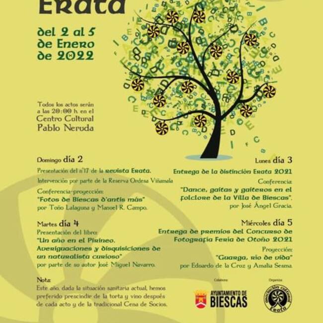 Este lunes la Asociación Cultural Erata hace entrega de la “Distinción Erata 2021” a “Amigos de Serrablo” con motivo de sus 50 años, y hay una conferencia-proyección versará sobre “Dance, gaitas y gaiteros en el folklore de la Villa de Biescas”, por José Ángel Gracia.