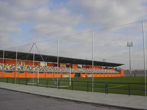 La nueva instalación cuenta con una grada lateral con un aforo máximo de mil doscientos cincuenta espectadores, de los cuales mil treinta y dos son asientos individuales. En la misma se han ubicado dos módulos de asesos, una cabina de prensa, una taquilla y un bar. Debajo de esta grada se encuentran cuatro vestuarios para equipos y dos para árbitros, gimnasio, sala de prensa, sala de reuniones, lavandería, botiquín-sala de masajes, aseos, sala de instalaciones y un almacén para material deportivo.