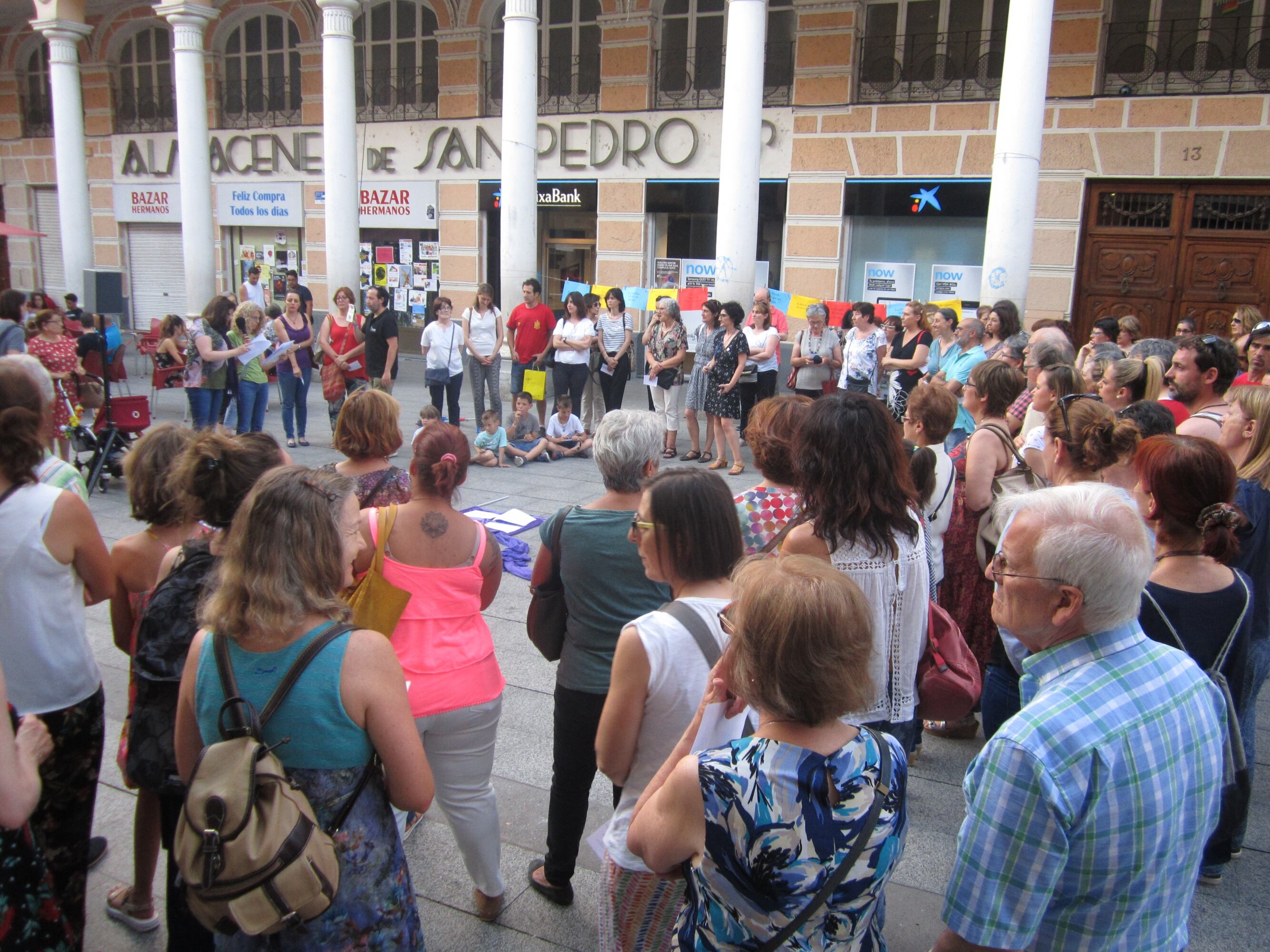 Más de 200 personas participaban en esta concentración, que después de la lectura de un manifiesto y un poema, culminaba con una sonora cacerolada.
