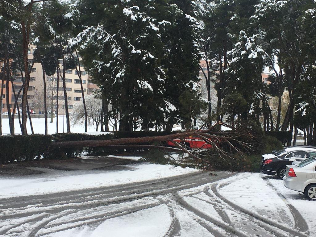 Las afecciones por el temporal Filomena comienzan han producirse en Huesca con la caída de árboles y ramas en distintas zonas arboladas de la ciudad. Uno de los sucesos se ha producido en el pinar del Hospital Provincial donde ha caído un árbol. El Plan de Emergencia Municipal de Vialidad Invernal (Pemuvi) también ha cerrado caminos como el de la ermita de Nuestra Señora de Salas.