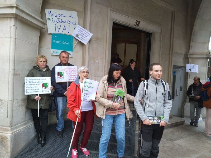 Cambiar ha realizado sendas concentraciones en las puertas de los centros de salud de Santo Grial y Perpetuo Socorro y ha puesto el acento reivindicativo en su oposición "a cualquier intención de desmantelar el Santo Grial". Antes al contrario, señalan, "en este centro se atiende a 21.000 usuarios por lo que es precisa una dotación con instalaciones, equipamiento y personal sanitario especializado, médico y de enfermería, además de una remodelación que deje las instalaciones en condiciones perfectas para el desarrollo de la actividad". Callén, que considera la prevención como un capítulo fundamental de la salud, también reclama especialistas en fisioterapia así como psicólogos. "Los recortes económicos derivados de la crisis han servido de coartada para adelgazar progresivamente la sanidad pública, algo que debe revertirse a la mayor brevedad".