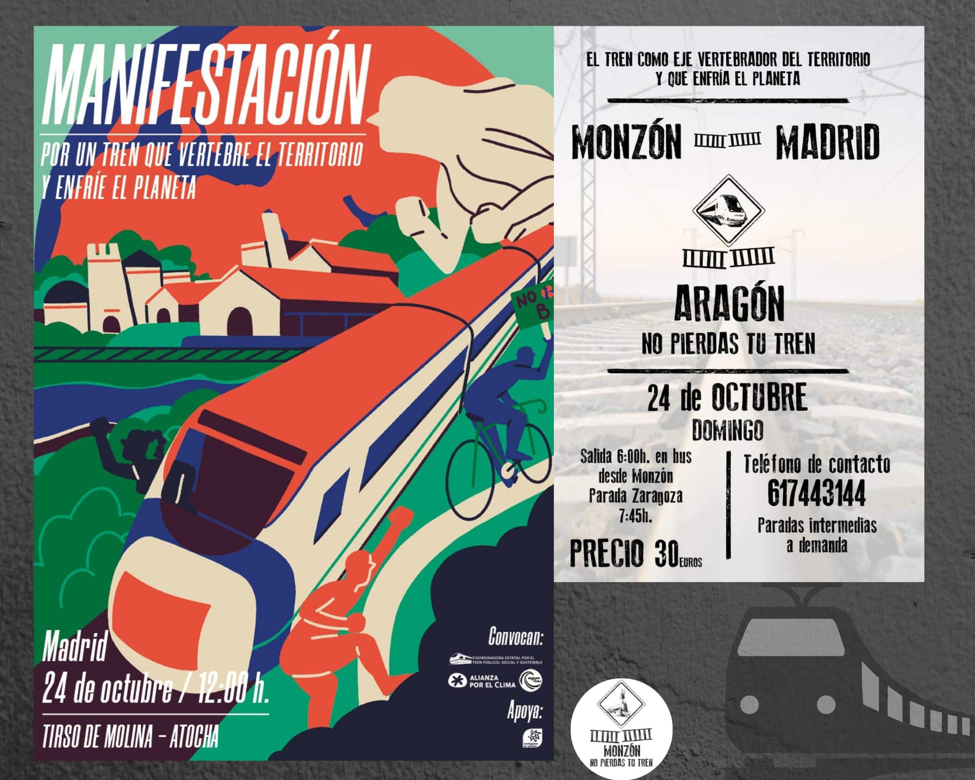 Cambiar Monzón, como participante en la Coordinadora estatal por el tren público, social y sostenible, apoya la “Semana de lucha por un tren que vertebre el territorio y enfríe el planeta”, y anima a participar en la manifestación que tendrá lugar el próximo 24 de octubre, domingo en Madrid.