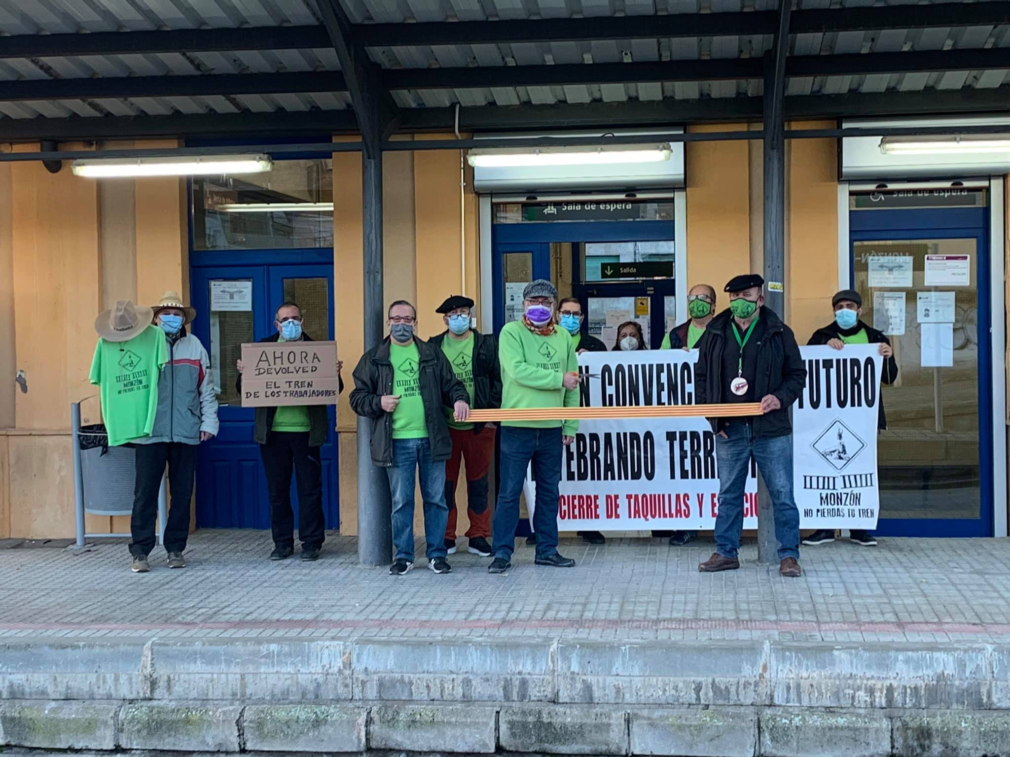 Desde octubre de 2019, la Asamblea de Cambiar Monzón viene realizando jornadas reivindicativas sobre el tren, alcanzando las 35 este pasado domingo. Una reivindicación que comenzaba pidiendo la apertura de la taquilla, a la que luego se sumaba la recuperación de las tres frecuencias de trenes con Zaragoza y Lérida y la prorroga del contrato de la atención presencial.