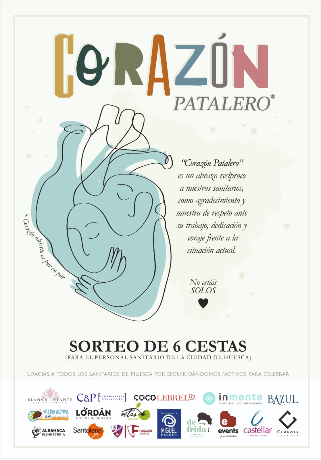 La asociación solidaria “Corazón Patalero” está formada por: Blanca Infante Centro Estético, C&P, Comunicación y Protocolo, Eventos y Congresos, Cocolebrel, Panadería y Pastelería Santolaria Deli, DeFrida Cafe, Inmenta, Viajes Olimpo, Joyería Cuarzos, Floristería Albahaca, Events El Cobertizo, Restaurante Bazul, Alimentación Ortas, Carnicería Miguel Escuer, Carpintería Castellar y Aove Lordán junto con la estrecha colaboración de la Sociedad Deportiva