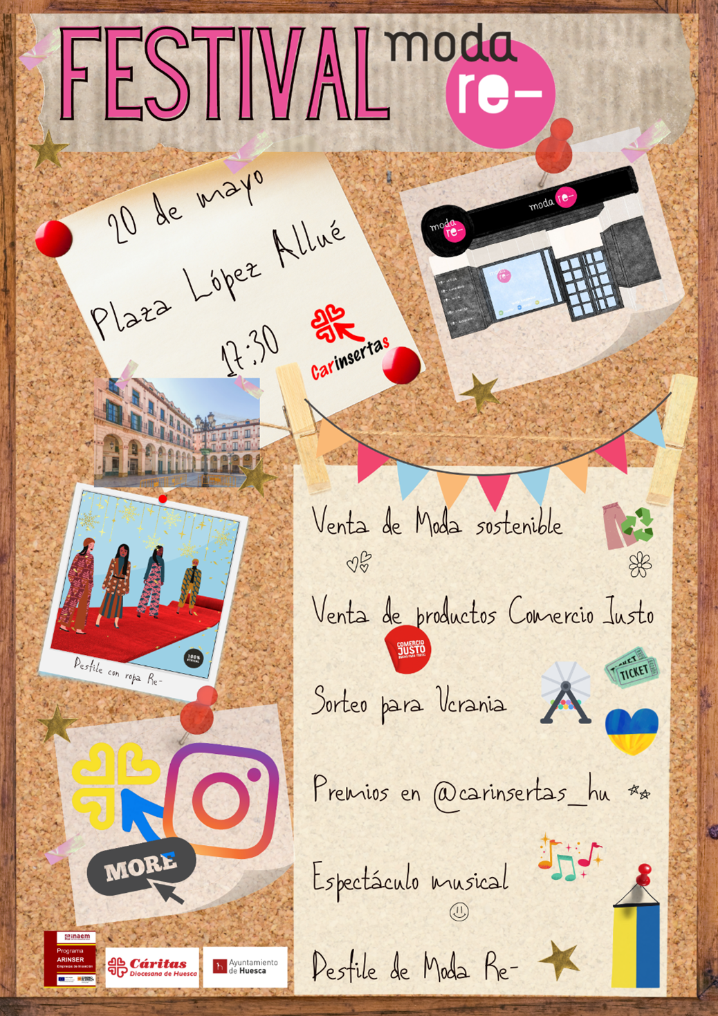 Este viernes, 20 de mayo, Carinsertas, la empresa de inserción de Cáritas Huesca, realizará el Festival Moda Re-. Uno de los eventos más especiales que lleva a cabo la empresa y con el que pretende celebrar, como cada año, el Día Mundial del Reciclaje, que se conmemora el 17 de mayo, para concienciar a la población sobre la importancia de adoptar hábitos que cuiden el medio ambiente. Este año, el evento tendrá lugar en la plaza Luis López Allué a las 17:30 horas.
