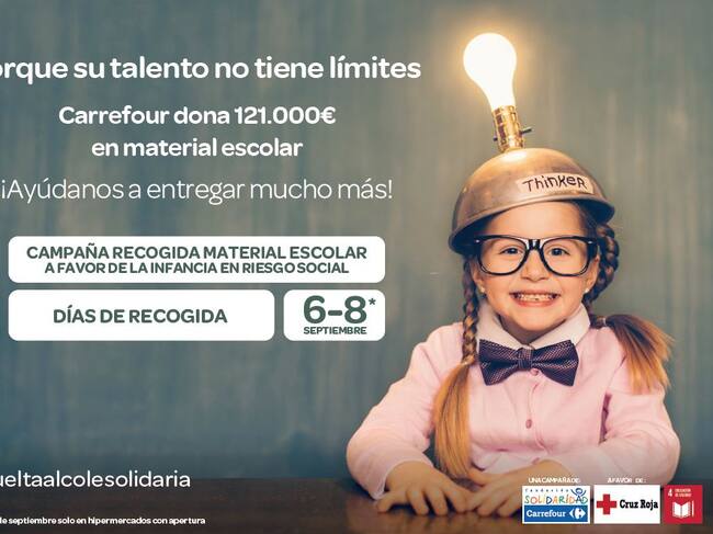 Conscientes de ello, Carrefour arranca esta edición con la donación directa de 121.000 euros en material escolar. Recursos con los que se estima poder dar cobertura a las necesidades en esta materia de 6.000 niños y niñas en situación de vulnerabilidad de toda España. Un punto de partida al que se sumarán las aportaciones que realicen los ciudadanos en el marco de la presente campaña.