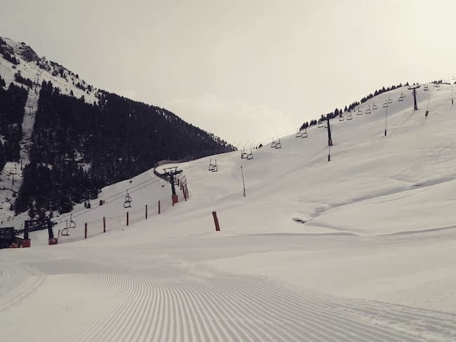 La estación del valle de Benasque, la más alpina de las aragonesas, se ha visto favorecida por su altitud en las últimas nevadas y ha acumulado espesores de hasta medio metro en cotas altas como Gallinero (2630 metros). Algunos de sus descensos, que se encuentran entre los preferidos por los ‘fans’ de la estación, se abren este viernes. En la previsión, además, hay pistas para todos los niveles, desde Robellóns -zona verde de debutantes- en Cota 2000, a pistas azules y rojas para quienes suman más destreza, e incluso alguna negra como Marmotas en Gallinero.