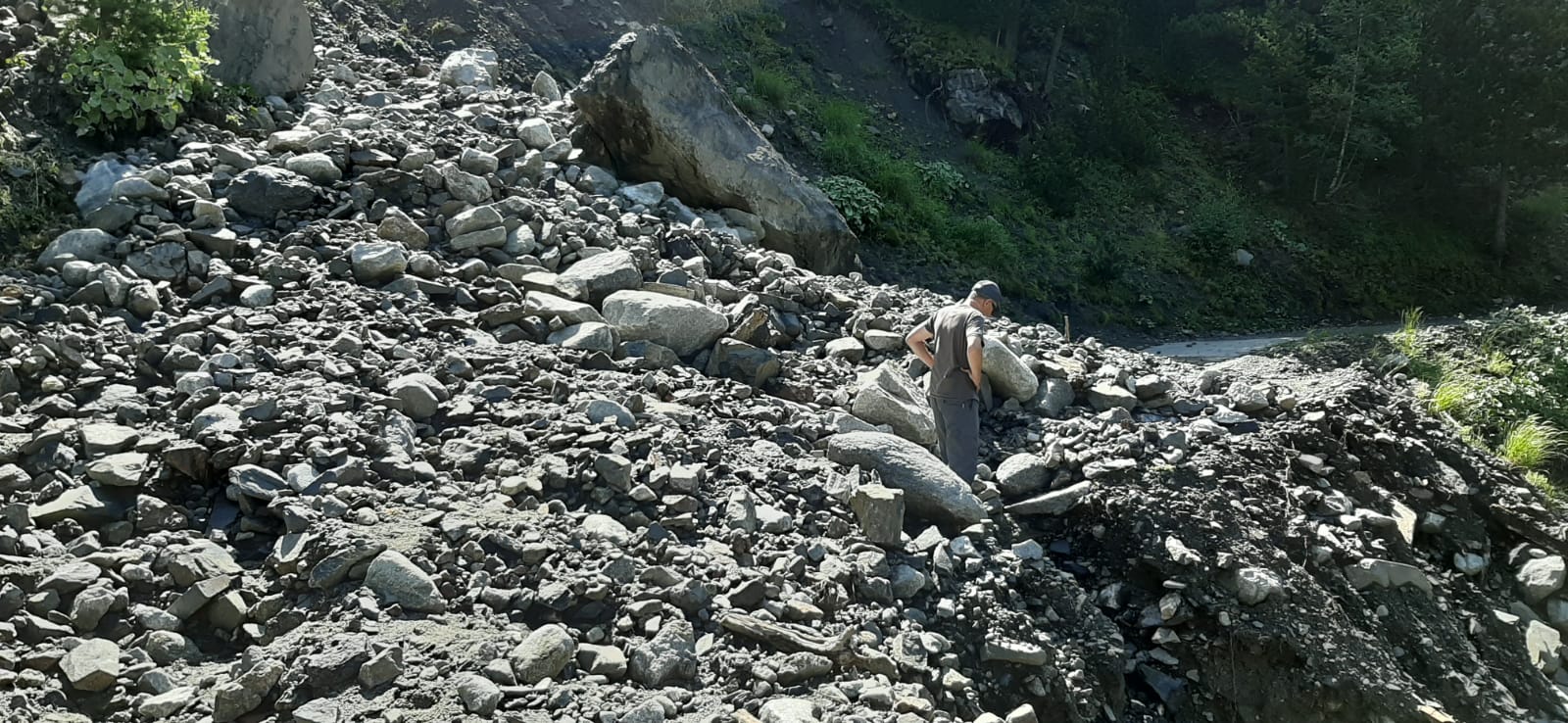 La tormenta duró apenas media hora pero cayó un gran volumen de agua acompañada de granizo que provocó varios desprendimientos de grandes piedras que, en algunos puntos, incluso han provocado la rotura del piso de la pista.