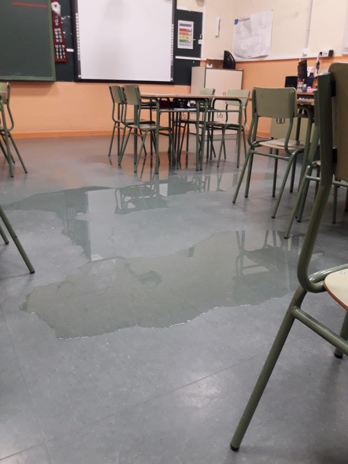 El equipo directivo señalaba que la cubierta lleva muchos años en mal estado y que se han ido acometiendo obras pero provisionales, de manera que, cada vez que llueve con intensidad aparecen las goteras y el falso techo continúa acumulando humedad.