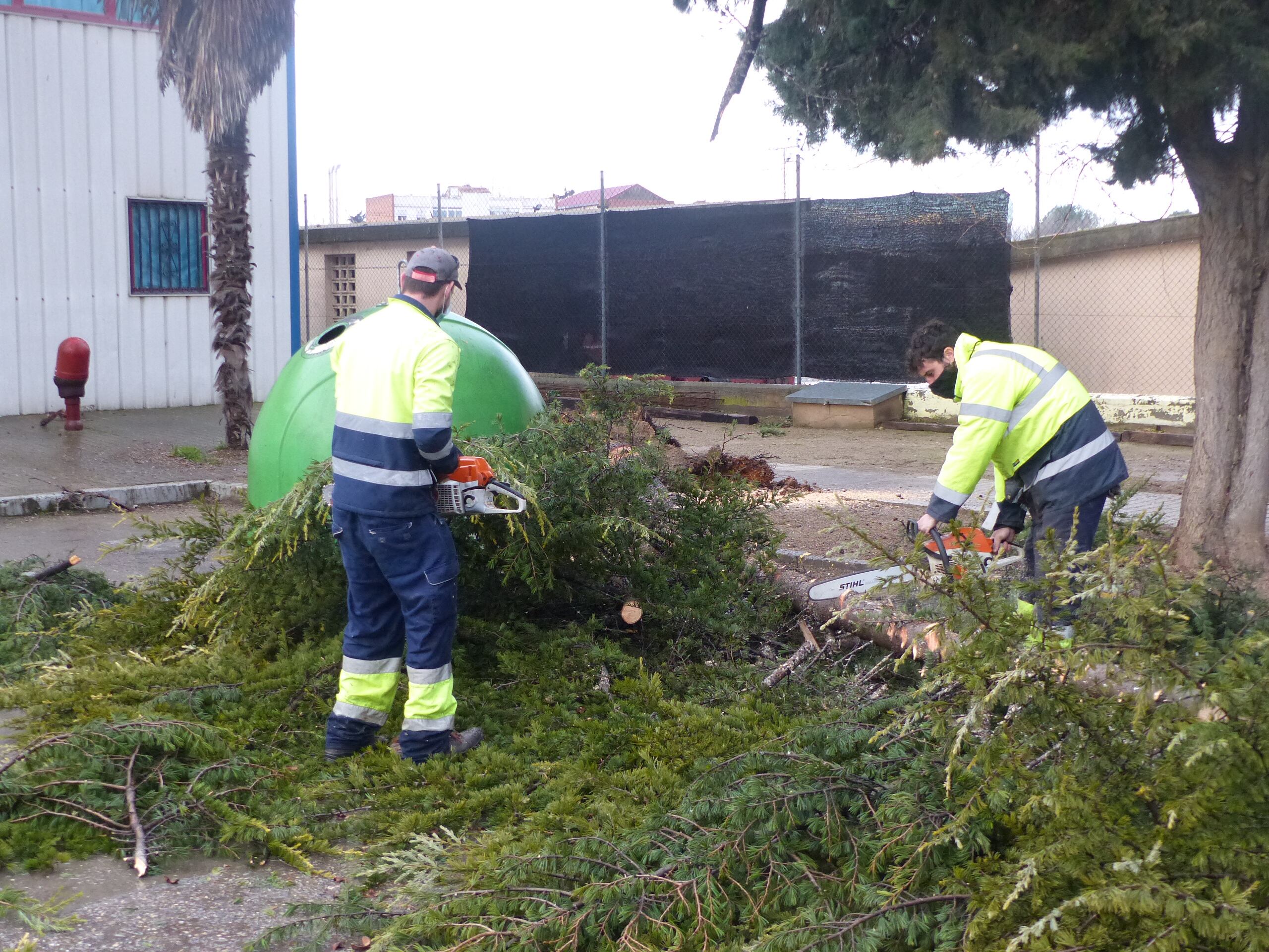 Desde primera hora de la mañana del viernes, la brigada se puso a trabajar en la retirada de los ejemplares y las ramas caídas para evitar afecciones al tráfico o al tránsito de los peatones