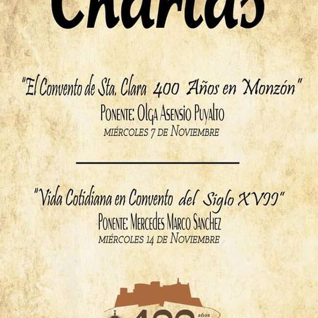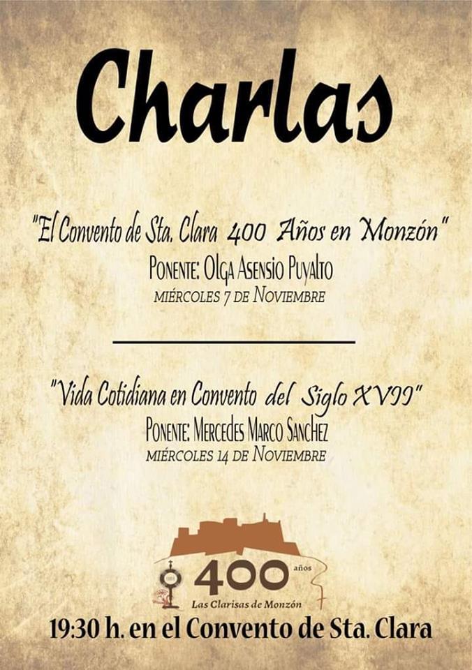 Dentro de los actos conmemorativos del cuarto centenario de la llegada de las Clarisas a Monzón, este miércoles, a las 19.30h, tendrá lugar la segunda de las charlas programadas en el Convento de Santa Clara, situado en el Paseo San Juan Bosco.
