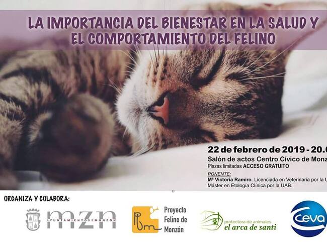 El Proyecto Felino de Monzón y la Protectora de Animales “El Arca de Santi” con la colaboración del Ayuntamiento han programado la charla " La importancia del Bienestar en la salud y el comportamiento felino", este viernes, a las 20:00h, en el Salón de Actos del Centro Cívico.