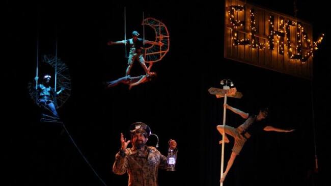 ‘Elhoy’ es un espectáculo de carácter familiar en el que se suceden números de pole dance, trapecio, malabares, portes acrobáticos y trapecio doble. El hilo conductor es la historia de un niño capaz de seguir su destino hasta alcanzar sus sueños. Un narrador introduce y desarrolla la historia, basada en uno de los cuentos de Rodari, para traladar al espectador a un mundo onírico y fantástico en el que todo es posible. Los más pequeños disfrutan de la narración oral y la ilusión viviendo la aventura de Elhoy. A los más mayores, se les ofrece la reflexión sobre dónde quedan nuestros sueños y qué caminos encontramos para alcanzarlos.