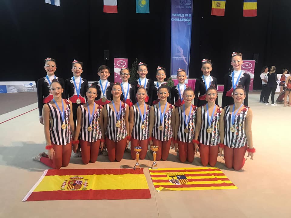 Los equipos dirigidos por Cristina Perea pasaron el viernes a la fase final y el sábado consiguieron ganar la medalla de oro, lo que supone toda una gesta para las representantes de España en su segunda participación en un Mundial. Con la medalla de oro, la provincia de Huesca lidera la gimnasia estética en España.