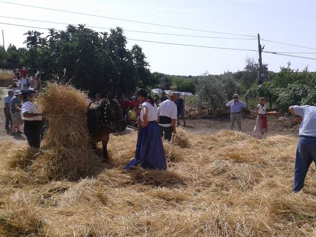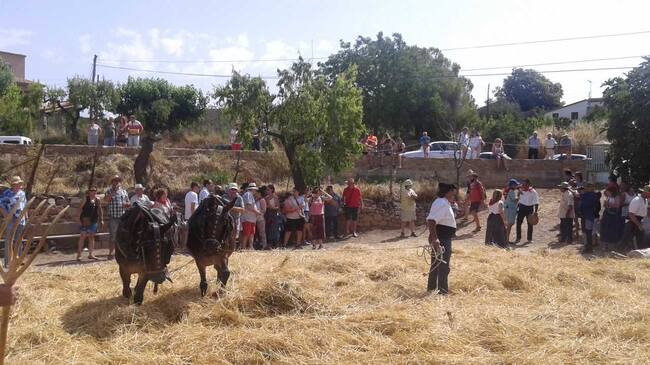 En esta fiesta se podía ver la siega con la dalla en el campo y como se hacían los fajos y se llevaban a la era para trillarlos con las mulas.