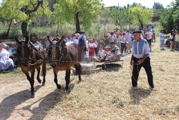 La recreación del proceso comienza con la siega del trigo con la dalla y después de atarlo y transportarlo con los animales de carga, se extiende en una era colindante donde se desarrolla el resto del proceso con un trillo de arrastre y otro de cilindro tirados por dos mulas. Los asistentes disfrutarán además de un almuerzo tradicional, compuesto de pan con vino y con miel, y deliciosas sopas de pan. Hombres, mujeres y niños se visten con las ropas y el calzado que se empleaban antiguamente.