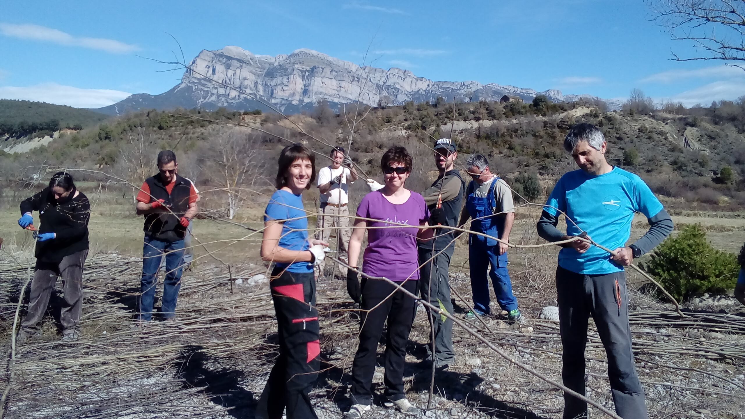 Nabateros y nabateras de Sobrabre, Echo y la Galliguera cortaban este fin de semana las sargas, las baras que se convertirán en sargas, casi cuerdas vegetales y que servirán para atar las nabatas para los descensos de este 2019. Un buen almuerzo y una comida acompañaban un día de trabajo con demasiado buen tiempo a la orilla del río Cinca en Aínsa.