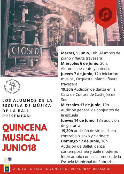 Hasta el 17 de junio, la Escuela de Música de la Ball celebra 15 días intensos, musicalmente, hablando, puesto que, se van a suceder los conciertos de las diferentes disciplinas que se imparten durante el curso. Además, entre el 30 de junio y el 4 de julio tendrá lugar la edición 2018 de Montañúsica (Montañas, teatro y música).