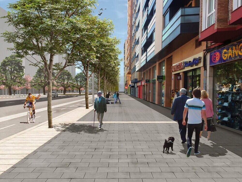 Así, se contempla la reducción del espacio viario, es decir los carriles de tráfico rodado, incorporando el carril bici, ampliando los espacios para el peatón –especialmente las aceras a pie de las dos fachadas- y optimizando el número de plazas de aparcamiento. En el cruce con José María Lacasa hay prevista la construcción de una rotonda para ordenar y facilitar la circulación.
