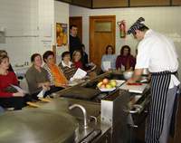 En primer cocinero en mostrar sus secretos ha sido esta tarde Wenceslao Romeu, del Restaurante El Segalar de Binéfar, que ofreció la siguiente propuesta culinaria: milhojas de manzana escalivada y anchoas, lubina rellena de setas y langostinos y soufflé de queso curado y sopita de frambuesa. Romeo estará de nuevo el próximo lunes con el segundo grupo de inscritos.