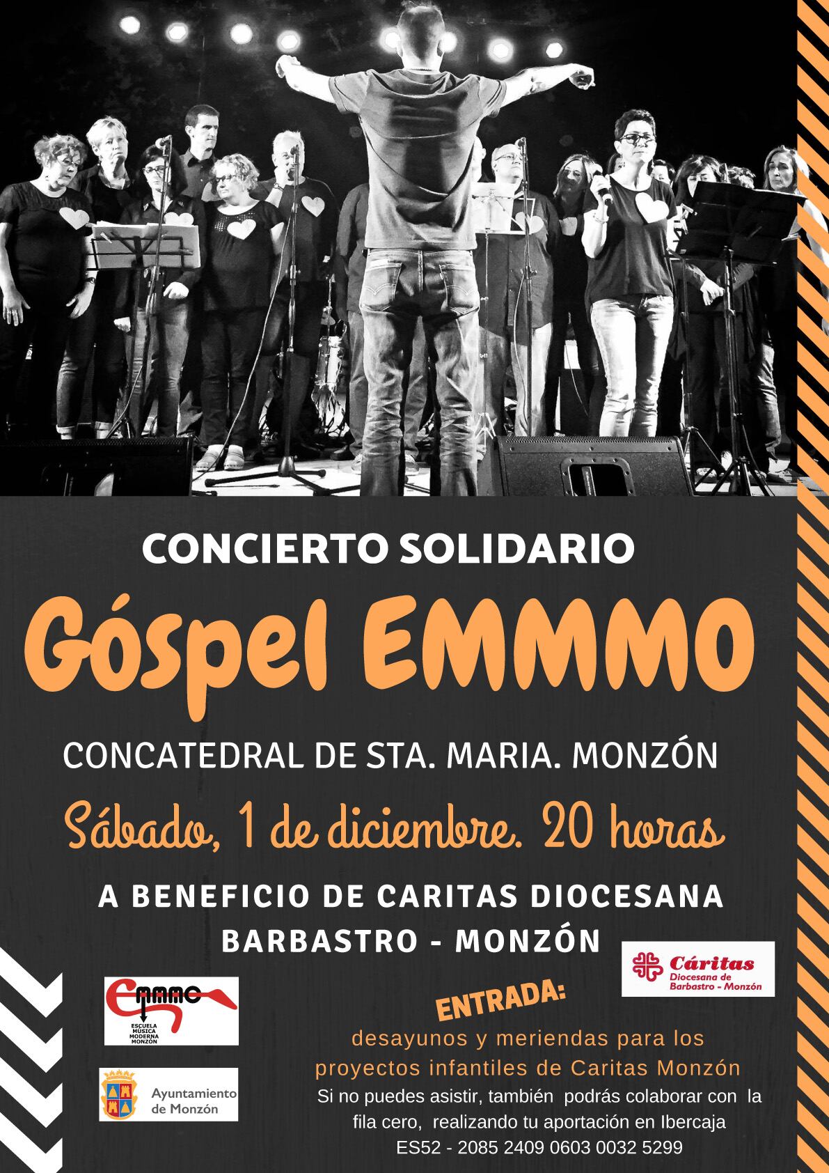 Se presentaba en el Ayuntamiento de Monzón un concierto benéfico, a cargo del grupo de Góspel de la EMMMO (Escuela Municipal de Música Moderna), en favor de Cáritas Diocesana Barbastro-Monzón, que tendrá lugar este sábado, 1 de diciembre, a las 20h, en la Catedral de Santa María de Monzón.
