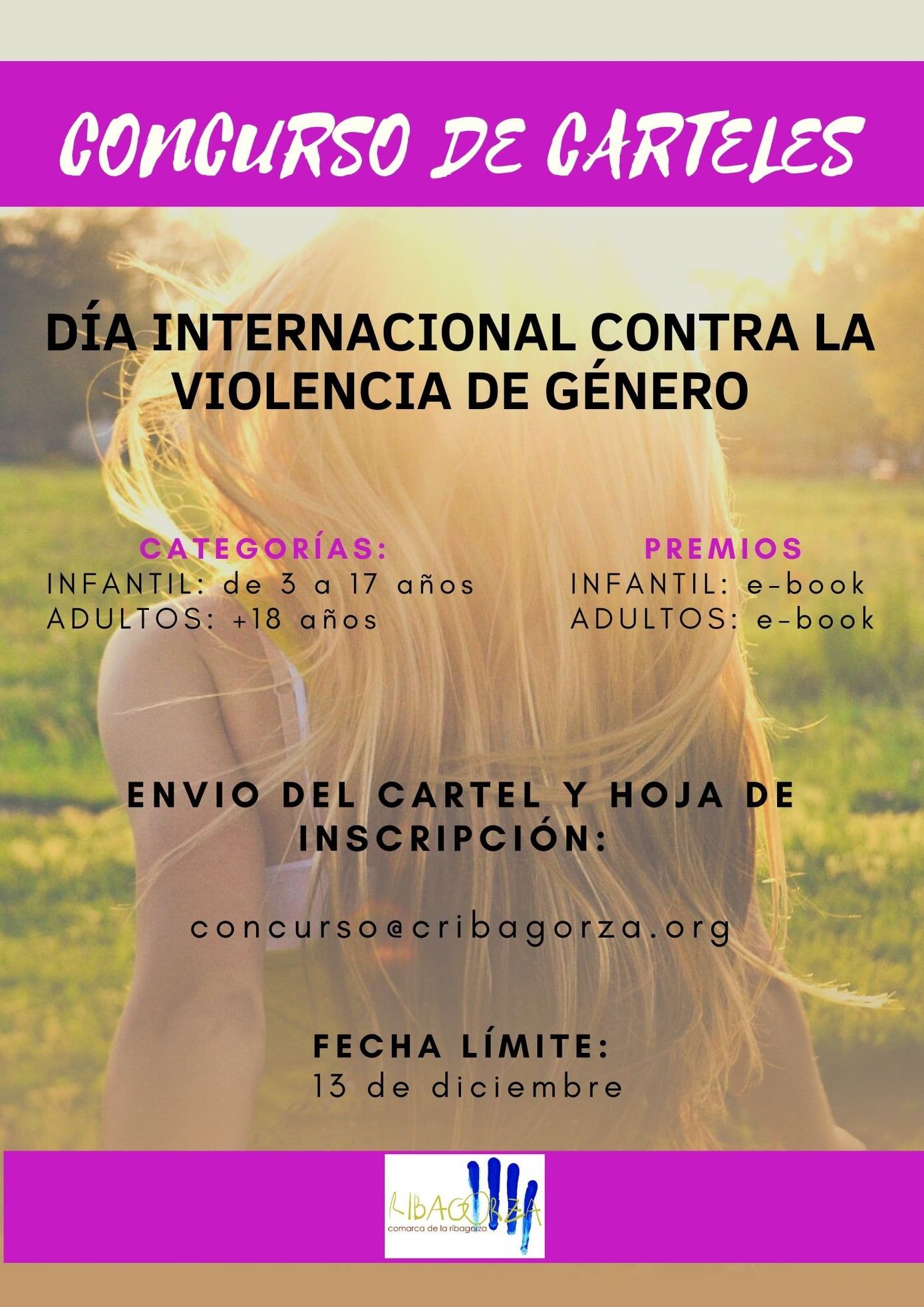 Este domingo 13 de diciembre es el último día para participar en el concurso de carteles convocado por la Comarca de La Ribagorza con la temática de prevención de violencia de género, manifestando, rotundamente, el rechazo hacia cualquier tipo de discriminación y violencia y dirigido a toda la población. Las fotografías de los trabajos se deben enviar a concurso@cribagorza.org.