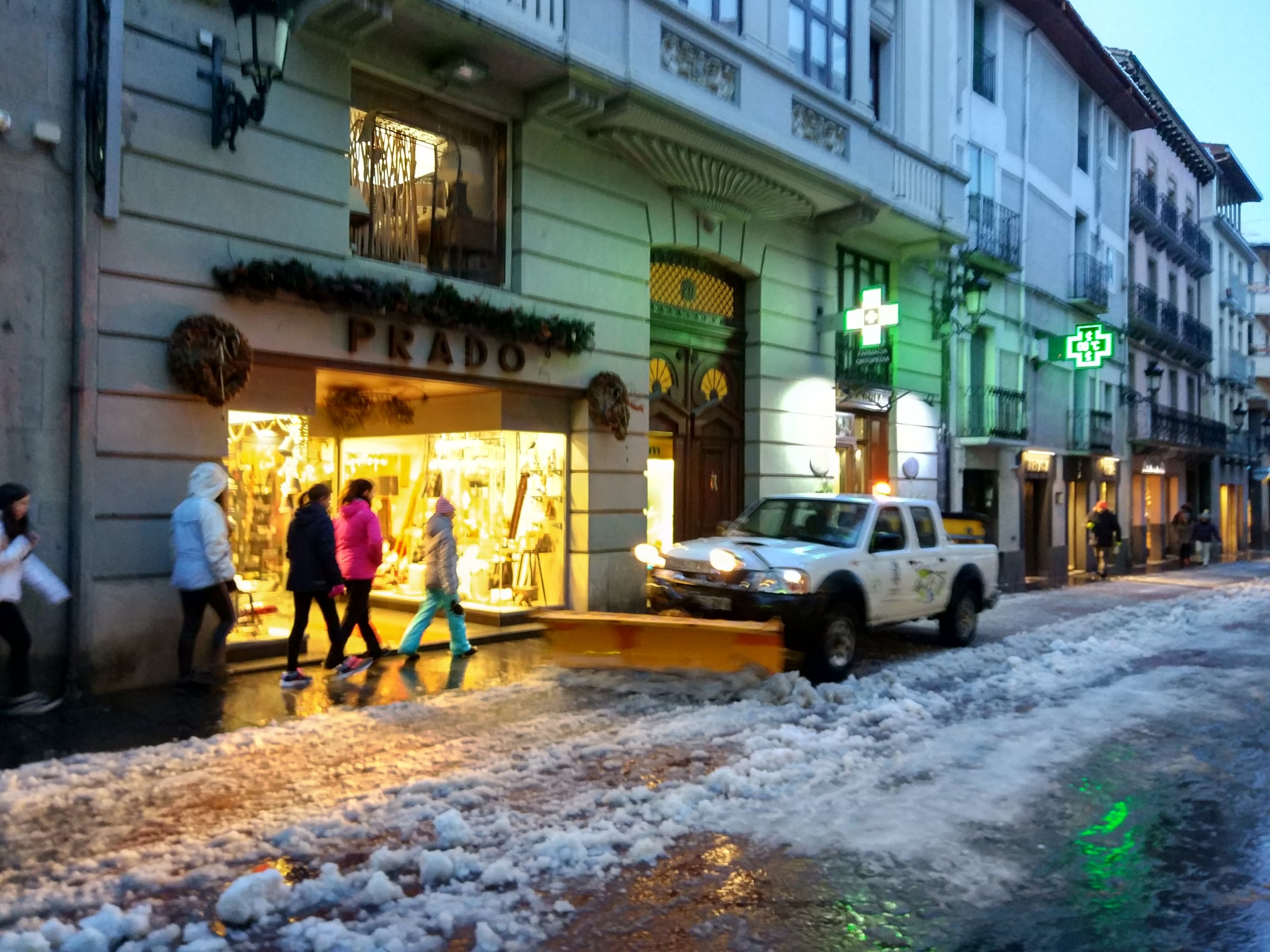 Las brigadas municipales ponen a trabajar todos sus efectivos. Acababan la tarde limpiándolos accesos de Osia, Botaya y Bernués. El Ayuntamiento cuenta con un quitanieves con salero y una pickup con cuña.