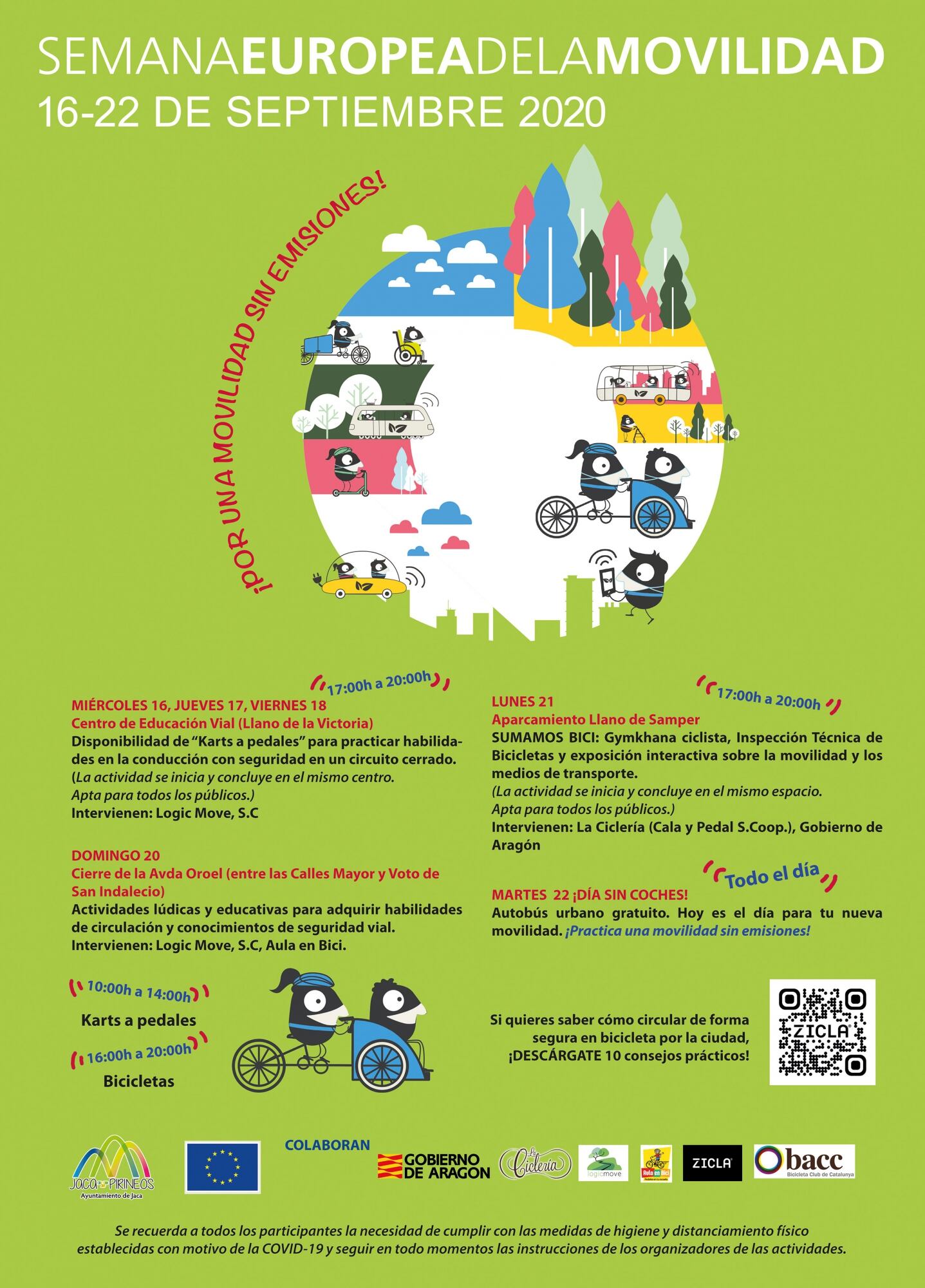 Tras tres días con karts a pedales en el circuito de educación vial del Llano de la Victoria, este domingo continúan las actividades organizadas por la concejalía de Movilidad de Jaca para conmemorar la Semana Europea de la Movilidad. Se cierra al tráfico la Avenida Oroel, donde se desarrollarán actividades de educación vial con karts a pedales (de 10 a 14 horas) y con bicicletas (de 16 a 20 horas).