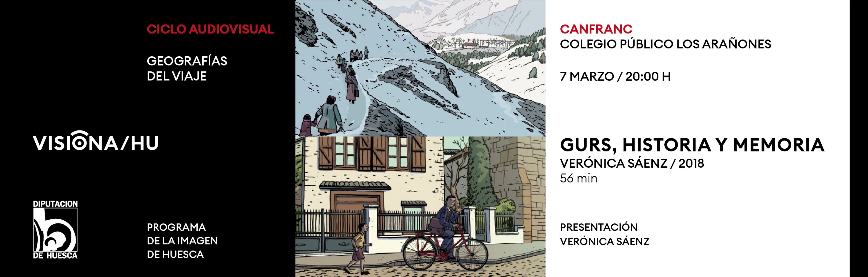 Los siguientes pases serán en la Jacetania: el primero, el día 6 de marzo, en el Palacio de Congresos de Jaca, y el segundo, el día 7 de marzo, en el Colegio Público Los Arañones de Canfranc, ambos a las ocho de la tarde. Se proyectará la película 'Gurs, historia y memoria' de Verónica Sánchez, quien estará presente en ambas localizaciones para presentar su obra a los asistentes. La película muestra un campo construido para republicanos españoles en la localidad francesa de Gurs que acabó convertido en un campo de concentración. Es un reconocimiento a quienes padecieron la barbarie y una llamada de atención en el presente.