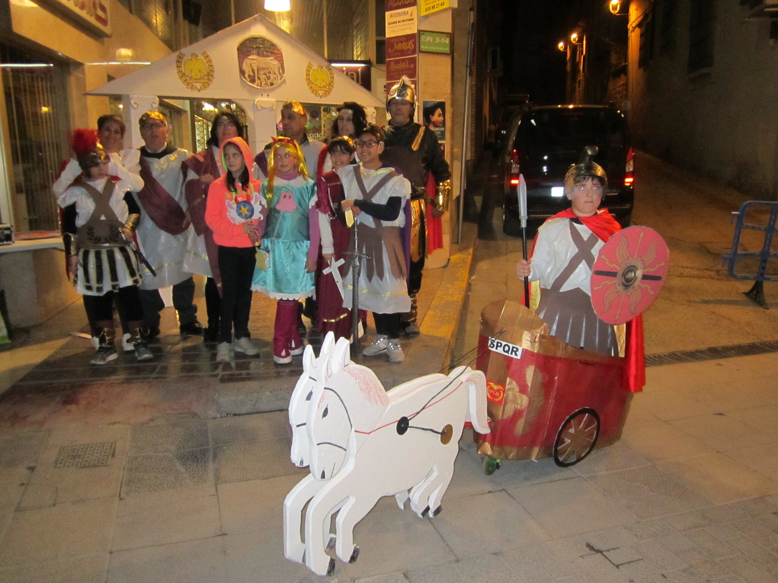 Después del pasacalles, el Carnaval se trasladaba al paseo del Coso con el grupo Popbusters, que combinó grandes éxitos musicales con la participación de los jóvenes que quisieron probar su voz en el karaoke. Antes de la entrega de premios se repartieron bocadillos y refrescos, gracias a la colaboración de la Sociedad Mercantil y Artesana.