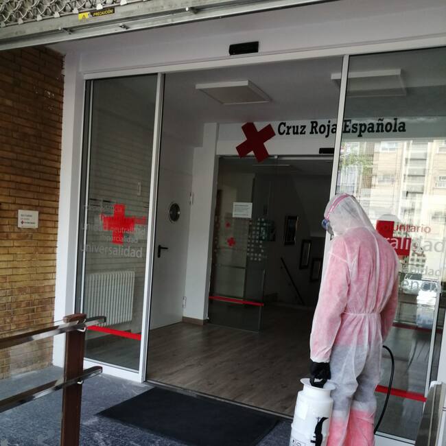 Cruz Roja Española de Huesca desinfecta sus instalaciones para proteger la salud de los voluntarios