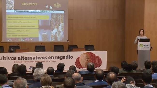 Riegos del Alto Aragón ha celebrado hoy su X Jornada Técnica, en la que se ha hablado sobre “Cultivos alternativos en regadío”, un asunto por el que había mucha demanda. Tan es así, que se habían superado todas las previsiones, con la presencia de 240 agricultores. Cultivos leñosos como almendras, pistachos, olivos, avellanos, nogales, pero también leguminosas, plantas aromáticas y medicinales, variedades del maíz o frutos rojos son los posibles cultivos alternativos sobre los que se hablaba, con el fin de aumentar la rentabilidad o la posibilidad de instalar empresas de transformación o comercialización.