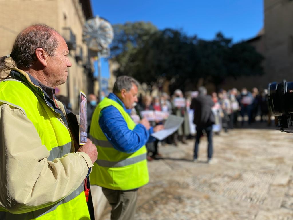 Un centenar de vecinos del municipio se concentraban frente al Obispado de Huesca para reclamar la propiedad de la ermita Virgen de Casbas<br>