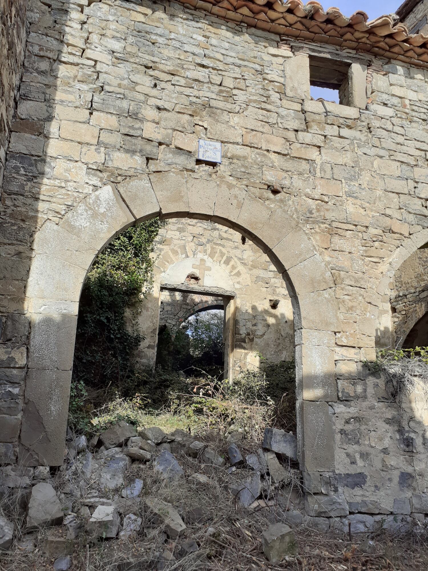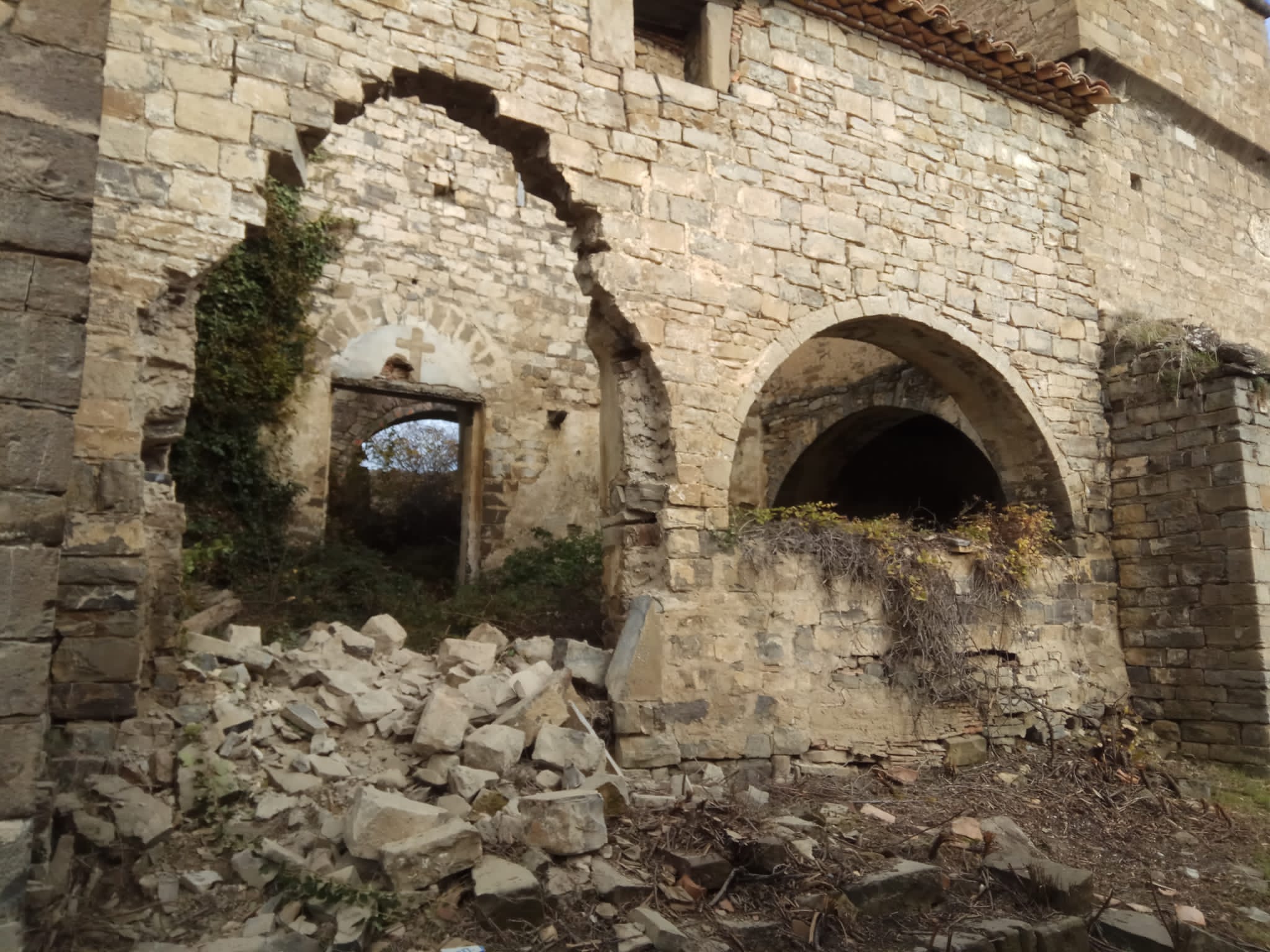 Una vecina del pueblo de Majones se percató hace unos días de que el arco de piedra de la iglesia del pueblo deshabitado de Huértalo había desaparecido. Las piedras aparecen arrancadas, un trabajo que no es fácil, explica el alcalde de la Canal de Berdún, “queda a unos 500 metros de donde puedes dejar el coche y habrán tenido que sacar las piedras con un carretillo”.