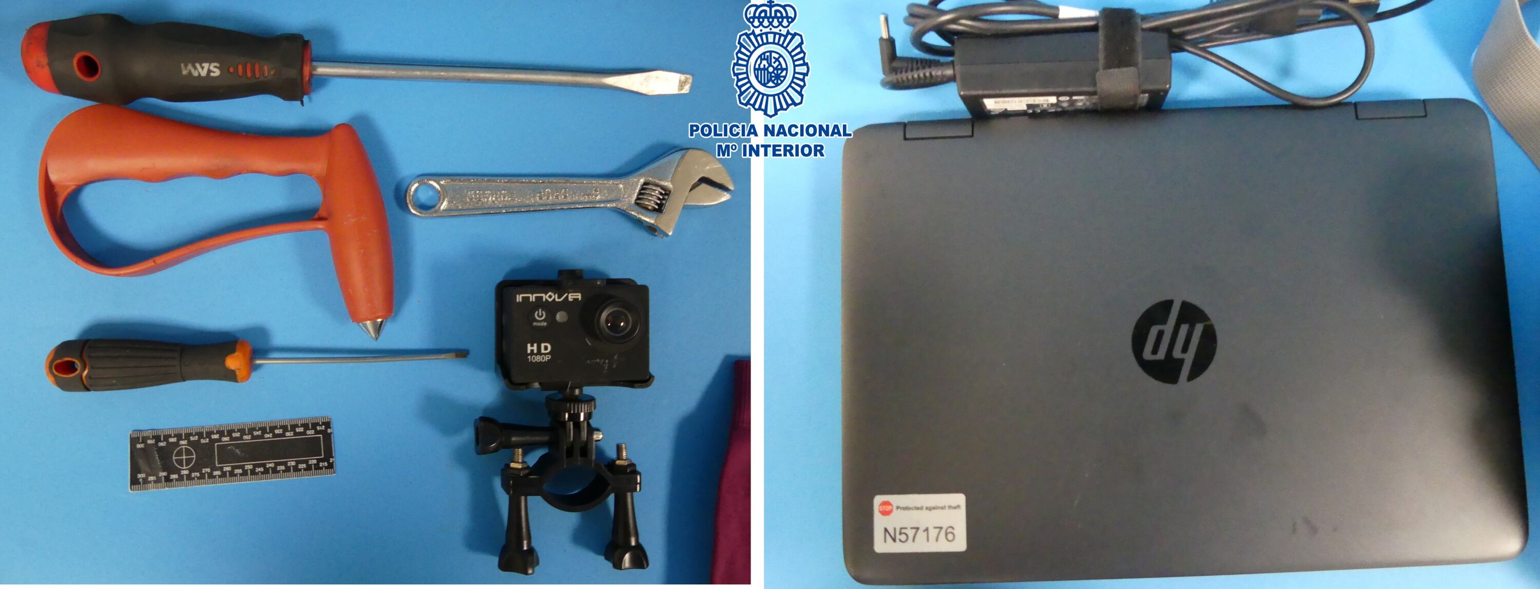 Las gestiones practicadas permitieron corroborar que los objetos informáticos y electrónicos habían sido sustraídos del interior de tres vehículos que en las horas previas habían sido localizados por agentes policiales con las ventanillas fracturadas y trasladados al depósito municipal para su custodia. Asimismo, los investigadores averiguaron que la bicicleta que disponía el detenido había sido hurtada en el mes de diciembre.