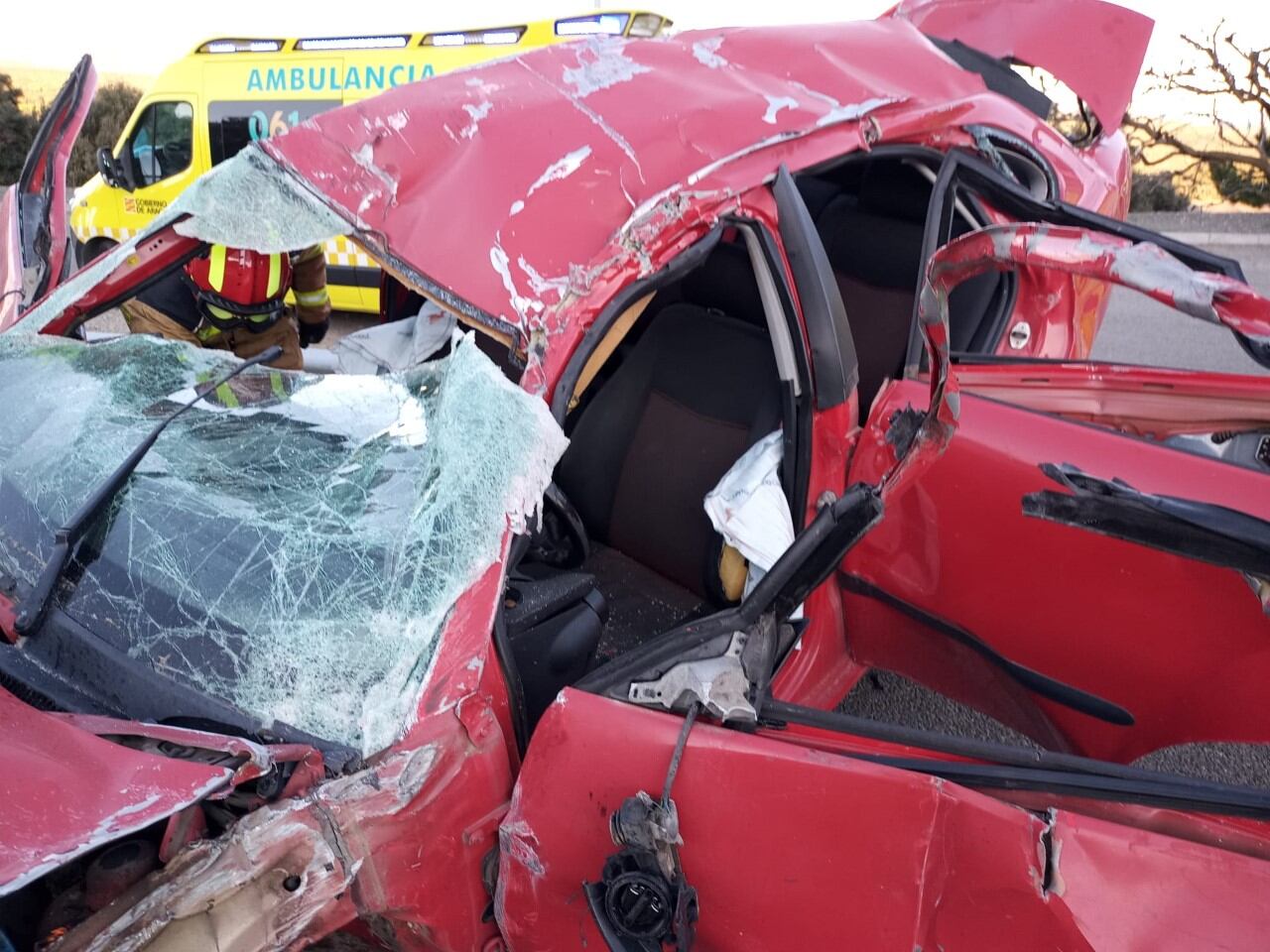 Efectivos del SPEIS intervenían para excarcelar al conductor que quedaba atrapado y no podía salir por sus propios medios. Hasta el lugar del accidente se desplazaban Guardia Civil, personal sanitario y de mantenimiento de la carretera.