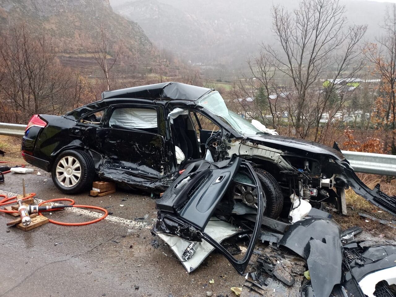 Este lunes, se registraba un accidente de circulación en la A-139, en las proximidades de la localidad de Eriste consistente en colisión frontolateral entre dos vehículos, un turismo y una furgoneta.