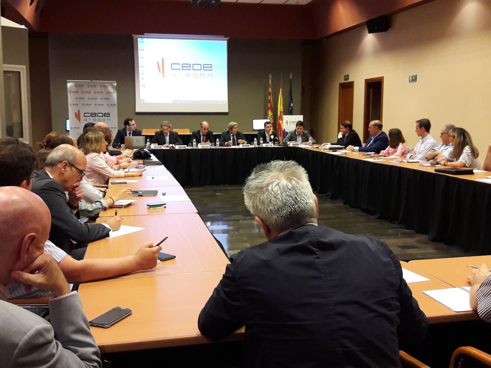El acto estaba encabezado por los presidentes de CEOE Aragón, Fernando Callizo, y AMAT, José Carlos Lacasa. Junto a ellos, han aportado el análisis empresarial del absentismo el Jefe de Relaciones Laborales y Administración de Recursos Humanos de BSH Electrodomésticos España, Joaquín Lasheras; el Director de Recursos Humanos de Saica Paper, Raúl Elgarrista, mientras que Guzmán Librán, del Departamento de Economía de AMAT, ha explicado la herramienta; todo ello moderado por Guillermo de Vilchez por parte de CEOE Aragón.