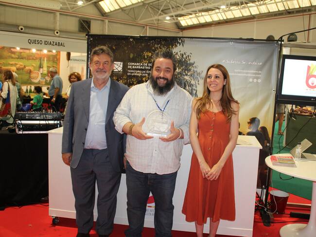 La concejal de Desarrollo del Ayuntamiento de Barbastro, Sonia Lasierra, y el presidente de Slow Food Huesca, José González, eran los encargados de entregarle este galardón al gerente de la empresa, Carlos Domínguez, que a partir de ahora podrá incluir en el envase de este producto el logotipo registrado FERMAGourmet® 2018, además de recibir pegatinas con el logotipo para incorporarlas a los envases ya realizados.