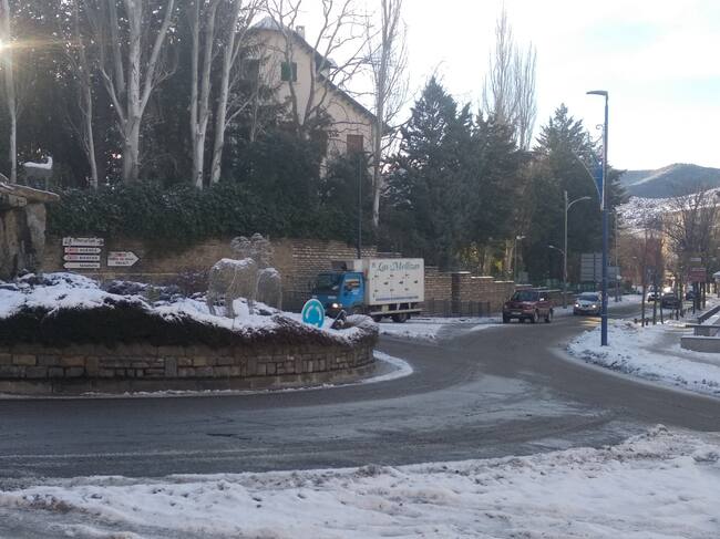 Esto ha motivado que desde Sallent de Gállego a Biescas y Sabiñánigo se han originado retrasos en la llegada a los centros por el hielo en la calzada