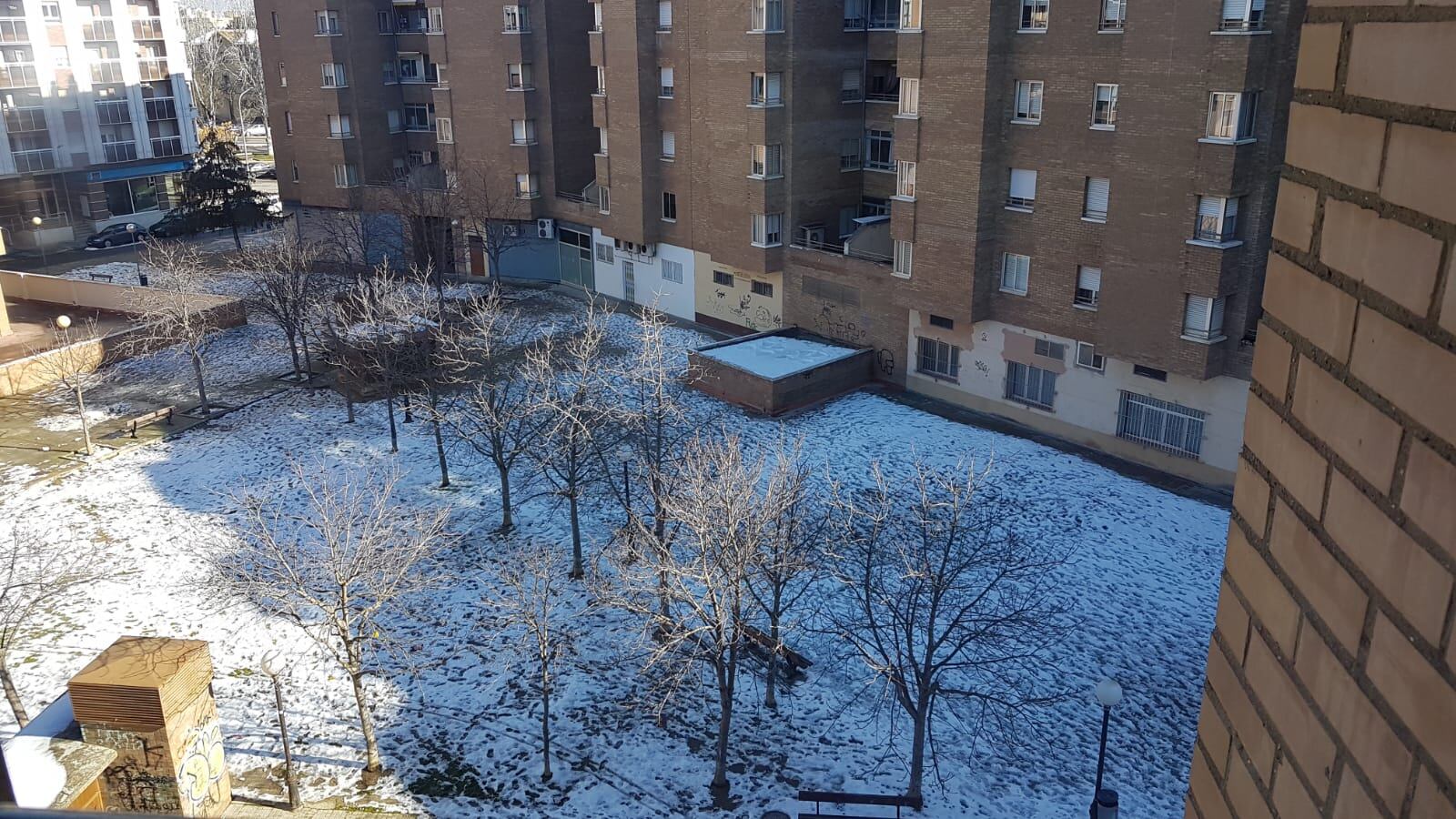 Pero no es el único punto. Vecinos de la calle José María Lacasa denuncian que hay plazas interiores con salida a esa calle y a Lanuza, con entradas además a edificios y con mucho tránsito de personas, donde no ha llegado la limpieza, y siguen llenas de nieve ya convertida en hielo, con el peligro que ello conlleva.