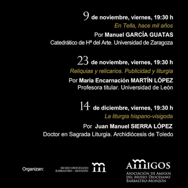 Las conferencias se ofrecerán en el salón de actos del Museo Diocesano Barbastro-Monzón. El acceso es gratuito, hasta completar el aforo.