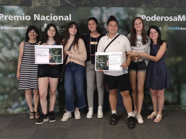 Los premios fueron entregados por el director de la obra social San Juan de Dios, Oriol Bota, y el director de la acción social de la fundación Caixabank, Raúl Marqueta, a las cinco alumnas y dos profesoras representantes del trabajo realizado en el colegio a través del proyecto interdisciplinar de aprendizaje y servicio Bienvividos22 sobre salud mental en 3º de ESO.