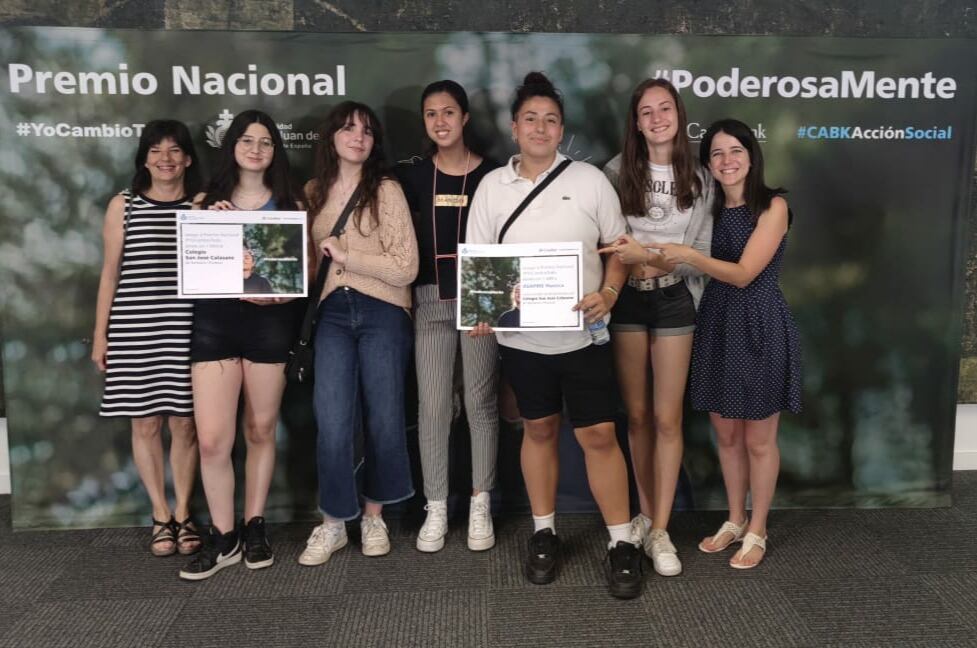 Los premios fueron entregados por el director de la obra social San Juan de Dios, Oriol Bota, y el director de la acción social de la fundación Caixabank, Raúl Marqueta, a las cinco alumnas y dos profesoras representantes del trabajo realizado en el colegio a través del proyecto interdisciplinar de aprendizaje y servicio Bienvividos22 sobre salud mental en 3º de ESO.